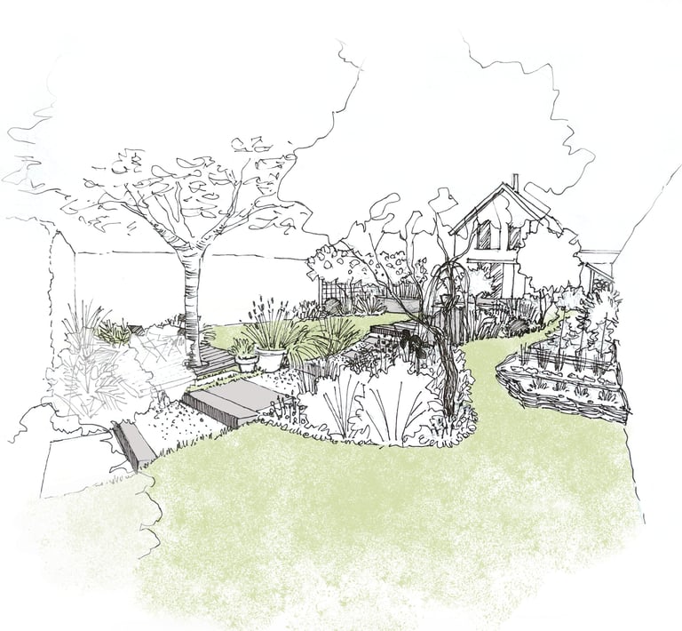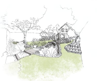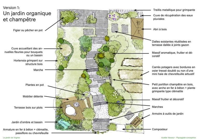 Virginie avait beaucoup d'idées pour l'aménagement de son jardin mais ne parvenait pas à trouver un fil conducteur qui lui permette d'aboutir à une vision d'ensemble. Or, pour commencer ses travaux de préparation du sol et de plantation il lui fallait y voir clair.